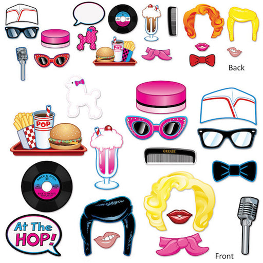The 50'S Photo Fun Signs Asst 1/Pkg is a fun accessory for a 50's themed party or gathering. This package includes one assorted sign that features ...