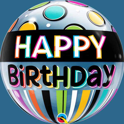 Elevate your birthday with sophistication using the 22-inch Birthday Black Band & Dots Bubble Balloon by Balloonatic. This multicolored bubble ...