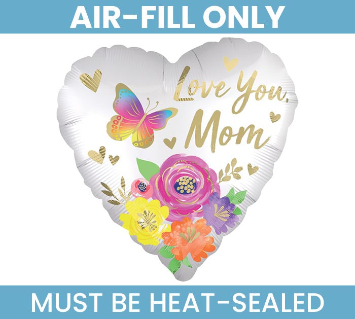 Love You Mom Satin Floral 9" Heart Foil Balloons (10/Pk) — Shimmer & Confetti