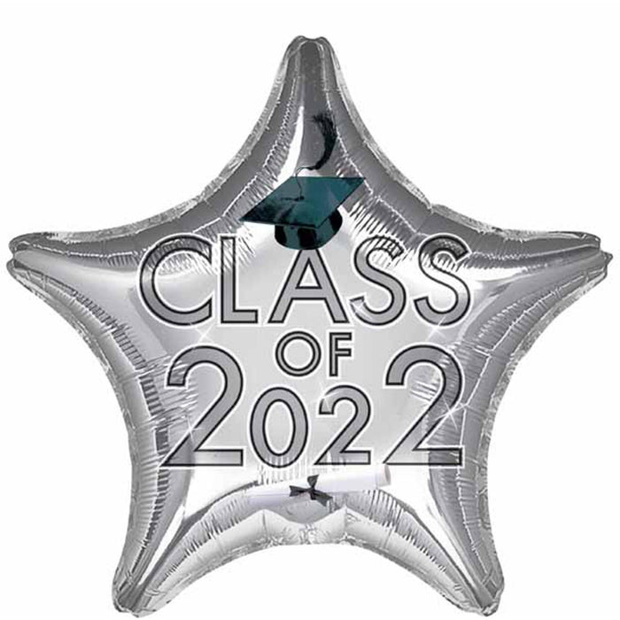 Shining Graduation Stars 18" Class of 2022 Silver Star Foil Balloon (5/Pk)