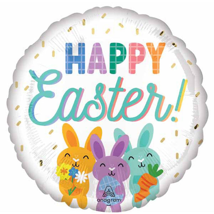 17" Happy Easter Cute Bunnies Foil Balloon (5/Pk) — Shimmer & Confetti