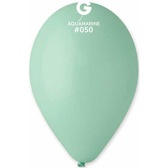 The Gemar 12" Aquamarine #050 balloons come in a convenient bag of 50, making it easy to decorate for any occasion from birthday parties to weddings. These balloons are a beautiful shade of aquamarine that will add style and elegance to any event. They are made with high-quality latex for durability and longevity, so you can use them for multiple parties.