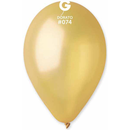 The Gemar 12" Metallic Dorato #074 50/Bag is a set of high-quality, metallic balloons designed to add a touch of elegance to any party or event. Ma...