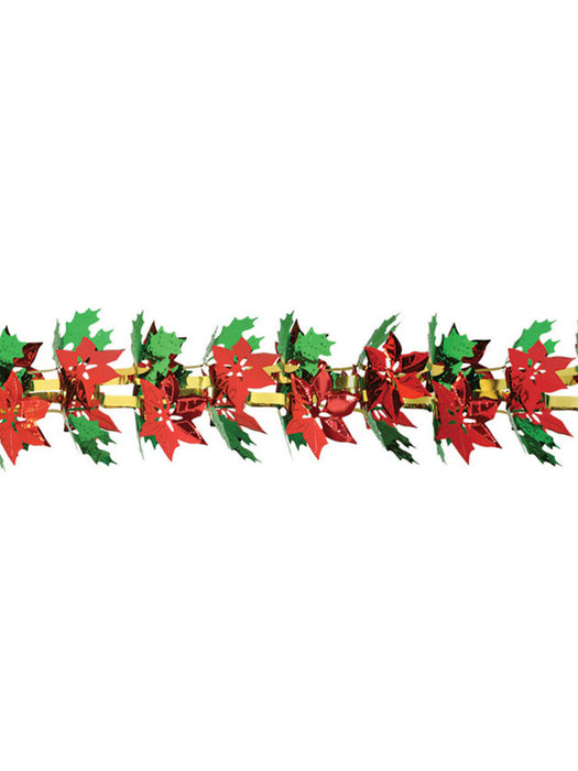 12' Poinsettia and Holly Christmas Garland (1/Pk) — Shimmer & Confetti