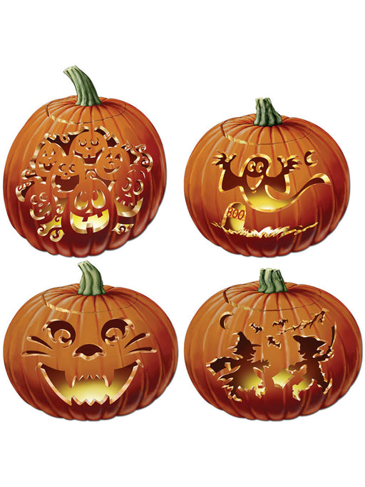 Transform your home into a festive Halloween haven with our Orange color Halloween Carved Pumpkins Cutouts. This set of four pumpkin cutouts is des...