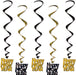 Happy New Year Gold & Black Whirl Streamers 36" (3/Pk)
