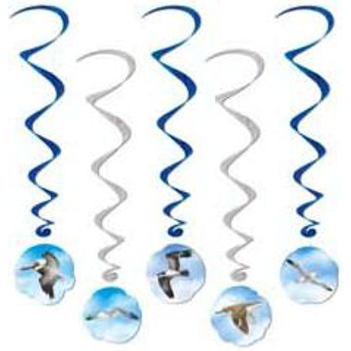 Make your ocean-themed party more lively and exciting with the Ocean Bird Whirls 3' 4" 5/Pkg! This set includes five decorative whirls featuring colorful and charming ocean birds.
