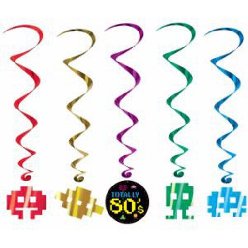 The 80'S Whirls 3' 4" 5/Pkg is a set of five different-colored whirl decorations with a fun and vibrant 80's theme. These whirls measure 3 feet and...