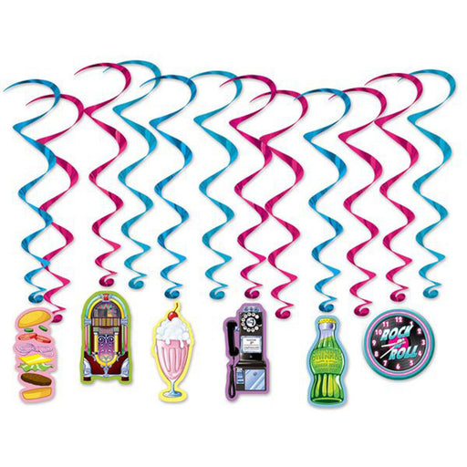 The Soda Shop Whirls (12/Pkg) are the perfect addition to any retro themed party or event. Hang them from the ceiling or use them to decorate a pho...