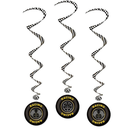 The Race Car Whirls 3/Pkg 40" is the perfect decoration for any race car-themed party! Each package includes three whirls, measuring 40 inches in l...