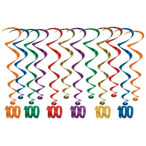 Elevate the ambiance of a 50th birthday celebration with our Dangling Whirls adorned in a vibrant multicolor design. Measuring 36 inches each, thes...