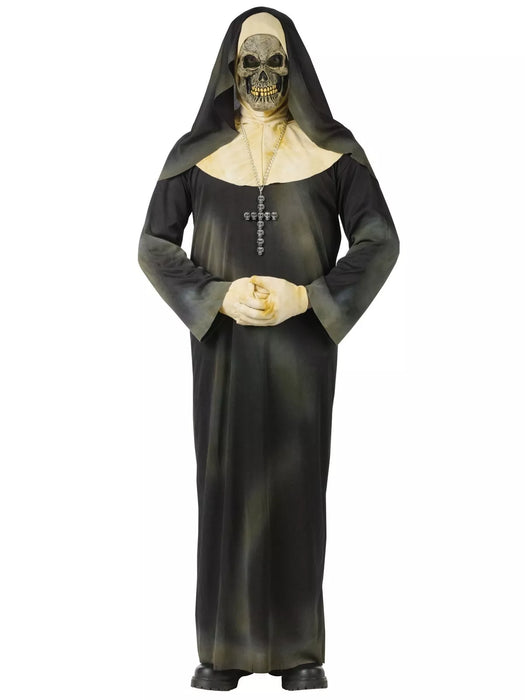 Step into the realm of eerie elegance with our Sinister Sister costume designed for men, tailored to fit size 6'/200lbs. This ensemble combines traditional nun attire with a sinister twist, perfect for Halloween or themed events where you want to evoke a sense of mystery and intrigue.