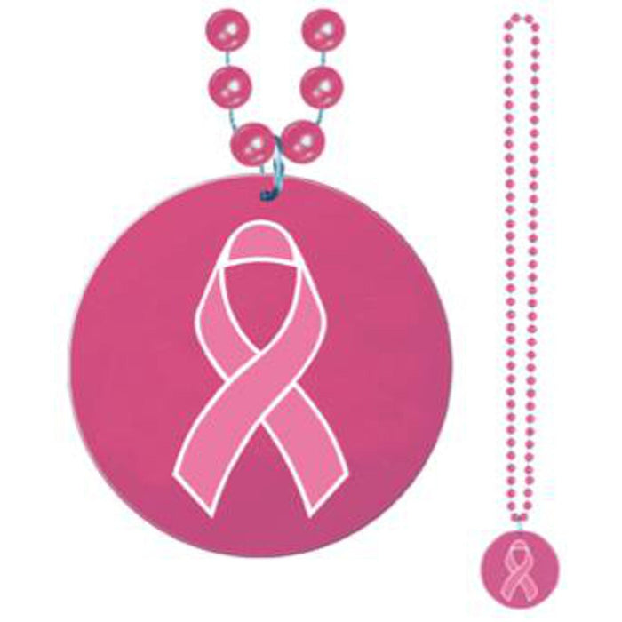 Printed Pink Ribbon Medallion Beads - 33" Length