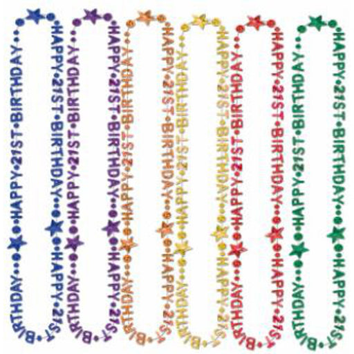 21st Birthday Beads-Of-Expression Festive 36" Multicolored Necklace (3/Pk)