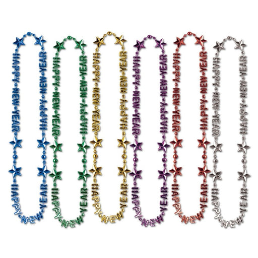 36" Multicolor New Year Beads with Happy New Year Horns (3/Pk)