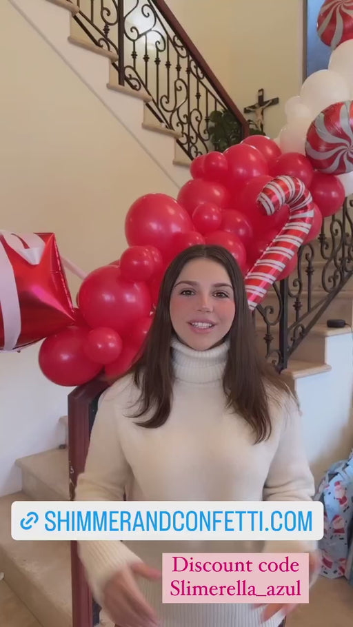 16-Foot Red and White Candy Christmas Balloon Garland and Arch Kit with 4D Gift Balloon