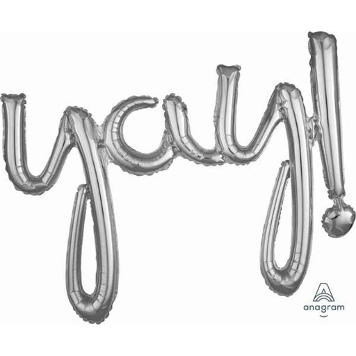 Introducing the "Yay!" Rose Gold Ci: Script Phrase G40 Pk - the perfect addition to your party decorations! Made with high-quality rose gold foil ...