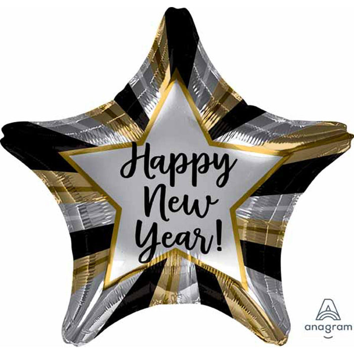 Radiate Joy with our 18" Happy New Year's Radiant Star Foil Balloon (5/Pk)