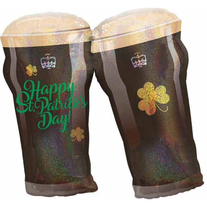 St Patrick's Day 28" Holographic Beer Glass Foil Balloon (3/Pack) — Shimmer & Confetti