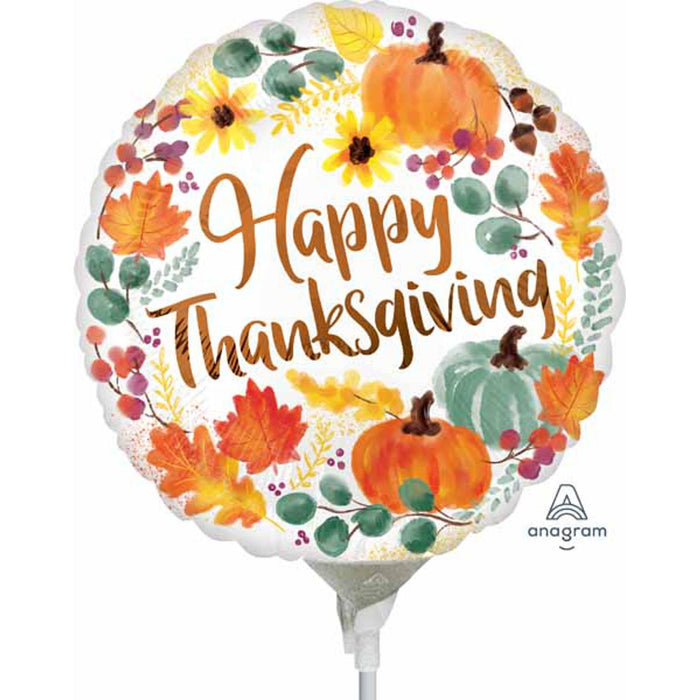 9" Airfill Only Thanksgiving Watercolor Foil Balloon (10/Pk)