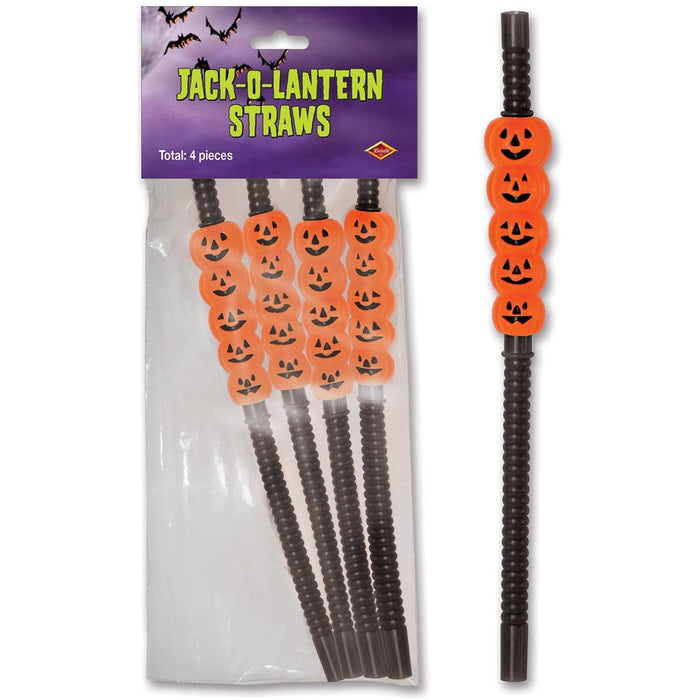 Jack-O-Lantern Straws - Fun and Festive Halloween Party Decoration (4/Pk)